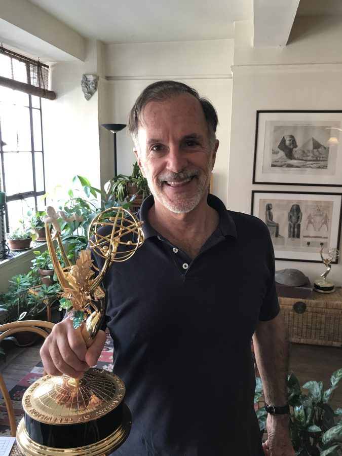 One of Luis Santeiro’s Emmy Awards sits on a living room side table, wearing a traditional Cuban guajiro hat. Santeiro has six in total, although his favorite, he tells us, is the Regional Emmy he won when he was just 30 years old for his work as head writer on the groundbreaking series ¿Qué Pasa, U.S.A.?