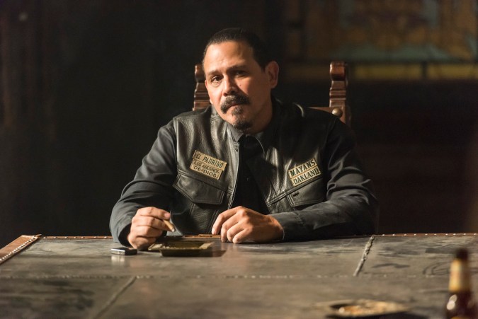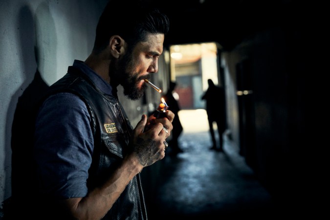 “I’ve been hearing it for the past 25 years. I don’t give a shit,” says Emilio Rivera, whose character, Marcus Alvarez, is one of the only crossovers from Sons of Anarchy. “The thing is this,” he continues, “we’re Latinos, Mexicanos, Chicanos, whatever you want to call us. We’re all working. Not only are we working in front of the camera, we had like about 60 people that are Latino working behind the camera. It’s just, we’re working. At the end of the day, we gotta get over that shit. You dig what I’m saying?”