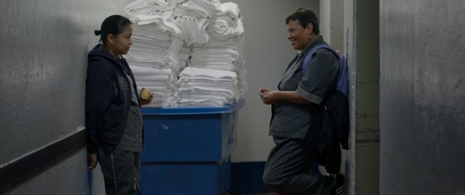 Luckily, the monotony is interrupted by small surprises every once in a while. For example, Evelia is called into a room to assist a young mother by watching her infant, so she can take a shower. In another scene, she is stopped by a Jewish guest at the elevator and is asked to help him get to the lobby by pushing the elevator buttons since it’s Sabbath. One of Evelia’s co-workers, the outgoing Minitoy (Teresa Sánchez), also provides her a way to escape the job’s endless repetition with her infectious charm and her attempts to get Evelia to abandon her introverted personality. In an ongoing storyline, Evelia checks in with management to see if anyone has claimed a fancy red dress a guest left behind. If a certain amount of time passes, she’ll be able to keep it, which gives her something else to look forward to each day.