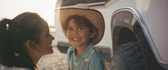 The performances of all three of the young kids (particularly Isabella Sky’s Carolina, the eldest of Alma’s children) are wondrous. Whether they’re giggling while chasing chickens they weren’t allowed to mess with (as the aptly-titled Tejano track “Se fugaron las gallinas,” cowritten by Muñoz, plays in the background) or tearing up when they realize they won’t be going to “the other side” to see their mommy any time soon, they are wholly believable as kids who don’t know why their life is suddenly so different. Seeing them slowly adapt from the bustling streets of New York City to the barren landscapes of the desert (with vaquero hats and boots no less!) is a thrill. But it’s Damián’s role as Jorge, who’s nicknamed Abu by his grandchildren, that helps sell this tender tale. A man still in mourning over his late wife, he finds new ways of seeing the world when Carolina, José and Tomás join him in his remote desert house in the middle of nowhere. (Jorge still gripes about Alma’s inability to have come to her own mother’s funeral.) He’s gruff but sweet, emotionally stunted but eager to open his heart for those he loves.