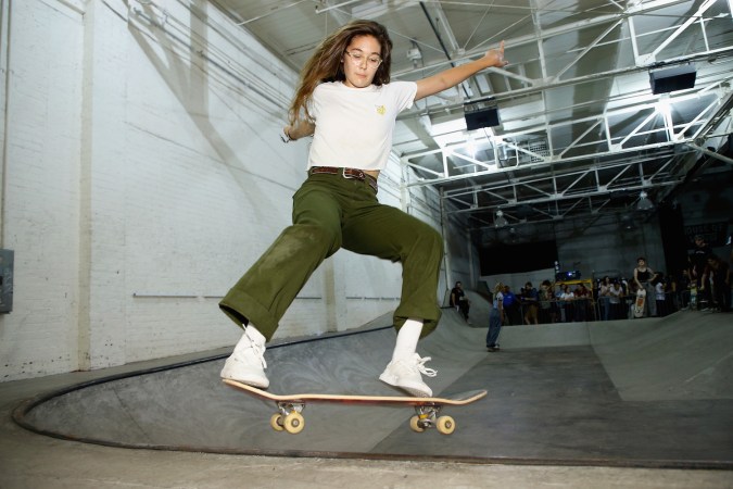 Ahead of a preview screening of the film at House of Vans hosted by Rooftop Films, Vinberg told us that shooting Skate Kitchen was super fun. “It felt like summer camp.” Mostly because it allowed her to dig deep into what she loves most about what she does. “Honestly I don’t think I’d been skating this long if it wasn’t for the lifestyle—the community, the people who gravitate towards it,” she told us. The words she uses to describe them (“very open-minded, artistic, creative”) accurately applied to the crowd the crew and film attracted in Brooklyn, where teens gathered to catch The Skate Kitchen show off their skills before the film screened for a raucous crowd.