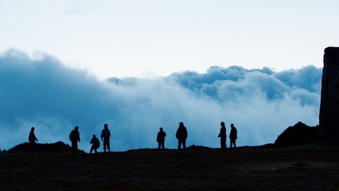 There are few things in this world as breathtakingly beautiful as the fog-covered Andes in the morning. If you’re high up enough, you can feel like you’re above the clouds. That’s precisely where Alejandro Landes‘ striking Colombia-set feature Monos begins: we’re up in the mountains. It is morning and a group of ragtag kids, some barely having hit puberty, are being put through the wringer. Theirs is a demanding workout at the hands of an imperious man of short stature. Their names — Pitufo (“Smurf”), Rambo, Leidi (pronounded “Lady”), Perro — suggest childish play but their demeanor and attire suggests something more mature, more dangerous. They are, it turns out, a group of guerrilleros in charge of a random outpost in an abandoned mine where they lord over a woman from the US (Julianne Nicholson) who’s been kidnapped and kept for ransom.
