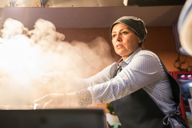 Similarly, we see the buzz that surrounds tacos de suadero stands at 3 a.m., where tipsy crowds on their way home from the bar make one final stop for the night. Here we see how taqueros sling their specialty cut to patrons, help them sober down, talk out some problems, and keep them entertained through their quick knife work and even quicker wit. While they might be dealing with patrons other eateries would avoid, these taqueros thrive in this late-night scenario.