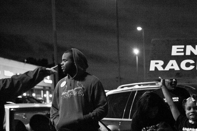 The non-indictment—shooting it—was very surreal. It didn’t feel like my feet were on the ground. It was incredible tunnel vision. Like, you hear the words Bob McCulloch is saying, you know, disavowing the humanity of an entire community, and you just laser in: I can’t believe we’re here at this point. In some respects it’s so obvious. It was coming the whole time. I don’t think anyone had the sense that there was going to be an indictment. It wasn’t a surprise, but at the same time it’s so disgusting. You just lose that sense of being aware of what’s around you and you’re just there, in that moment.