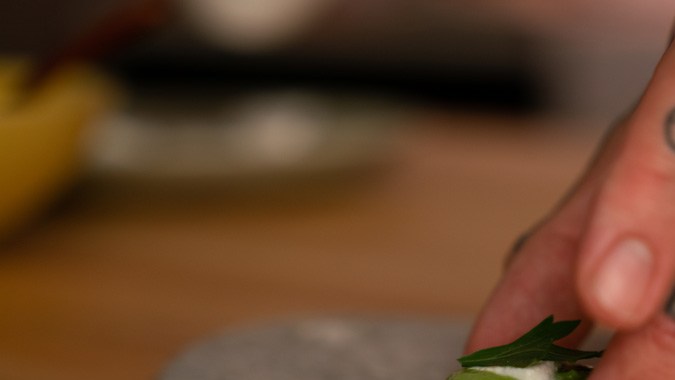 Don’t think for a second, however, that just because Herrera and others use avocado in their version means that guasacaca is another type of guacamole. As Herrera puts it, “[guasacaca] is even better than guacamole.” He adds other ingredients to his sauce, too, like green bell pepper, serrano pepper, spinach, distilled white vinegar, lime juice, olive oil and black pepper. He has a box of RITZ Crackers ready for the final presentation, too.