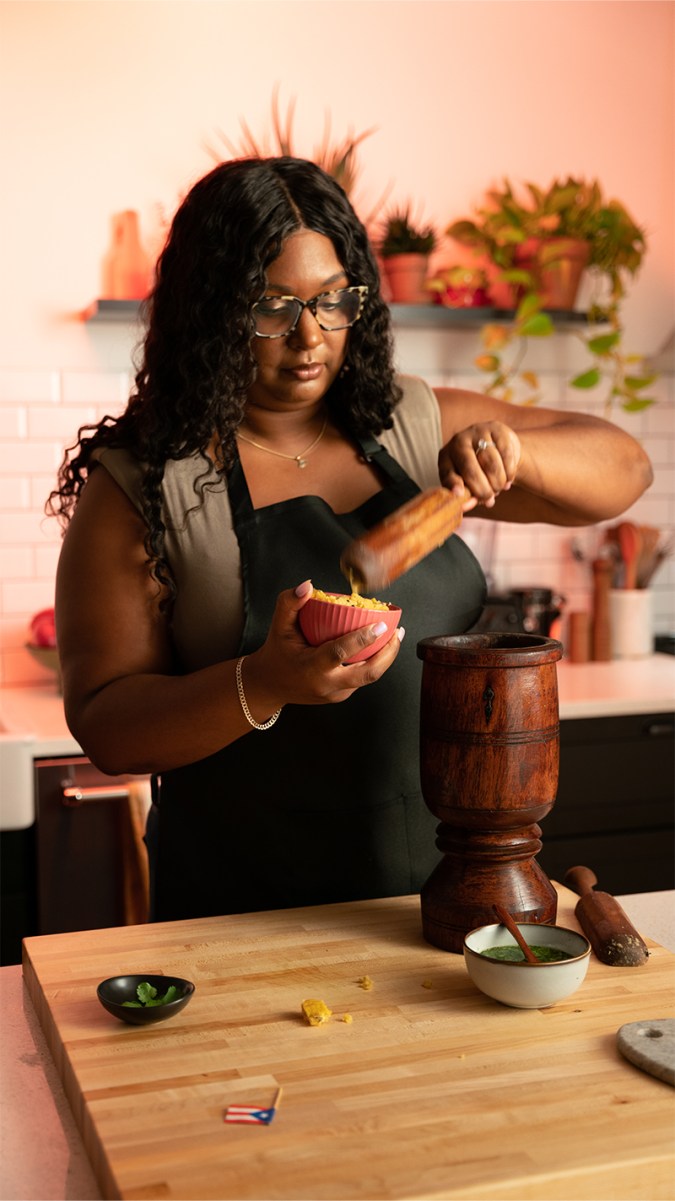 The first time Chef Lyana Blount tried mojo sauce and mofongo was when she was a little girl at her grandmother’s house in the Bronx. She remembers her grandmother coming home after a long day of work to take care of her and her two siblings. Along with mofongo and mojo sauce, which her grandmother called “pica verde,” she would make tostones (fried green plantains) with the meal.