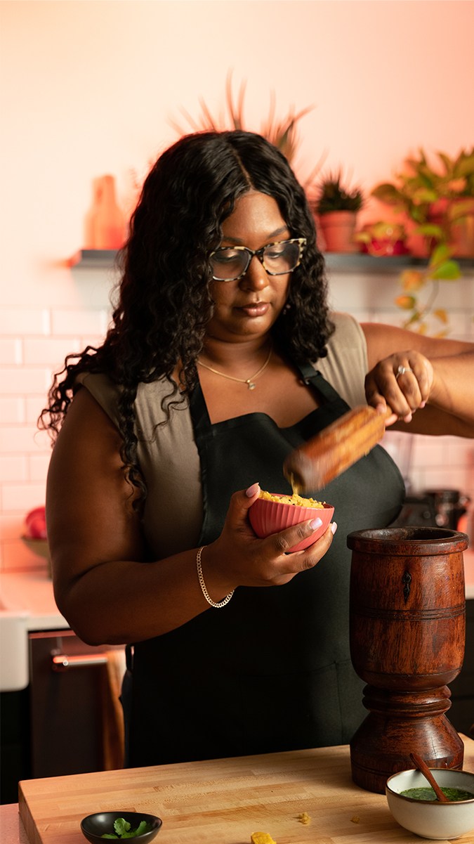 Today, Blount, who is Black and Puerto Rican, is the owner of the pop-up restaurant Black Rican Vegan in the New York City area. There, she recreates many of the traditional dishes she remembers from her childhood for her community. This includes mojo sauce, which Blount said she enjoys eating now with vegetables or rice and beans and paired with RITZ Crackers.