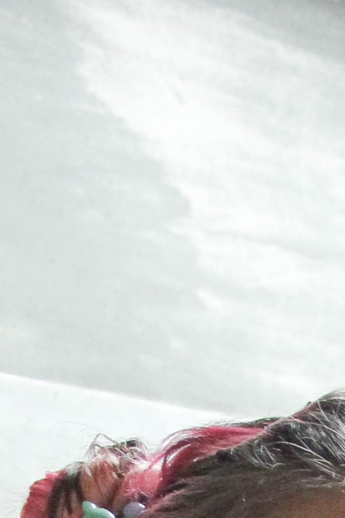 Inés rhapsodizes with the virtue of some sort of Gen X punk savant. Her hair is parted down the middle to highlight the long neon pink strands that flow over her right shoulder. A fierce septum piercing stands at a contrast to girlish purple glasses, and she sports a pair of shiny black leggings. Her partner, Jorgelina Mandarina, does too except her leggings are an acid trip kaleidoscope of space and color that are impossible to tear your gaze away from. Guadalupe Alpuin, who rounds out this cooking trio, has her hair pulled back tightly to show off her shaved sides.