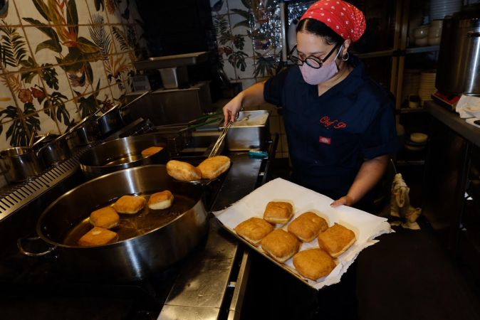 Born in the Bronx, Velez grew up in restaurants — literally. Her mother’s cousin owned a Tex-Mex concept with multiple locations throughout New York in the 1980s and ’90s. The now 30-year-old would stare at the cooks, entranced by their chopping and slicing in the kitchen as a child. Years later, as a teen in Orlando, she got a taste of the hustle and bustle of cooking for hungry customers while working in fast food. Despite her immigrant mother’s hopes that she’d become an engineer or lawyer, Velez decided then what she always knew: she would be a cook. Even more, she’d sprinkle her mother’s lessons about service in the plates she prepared.