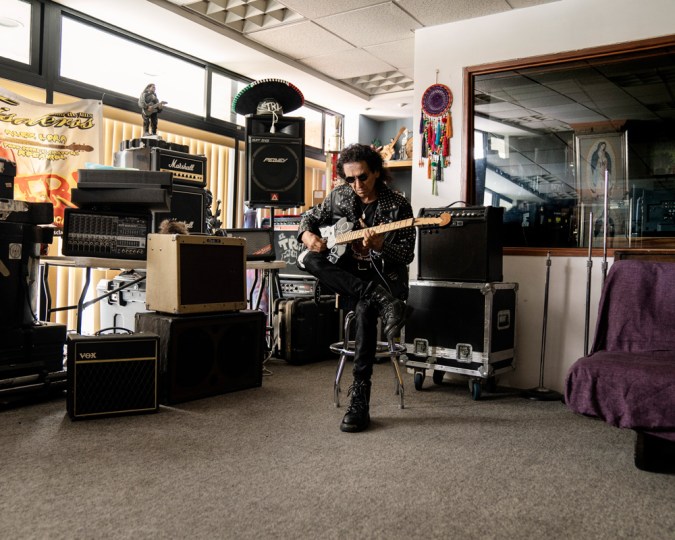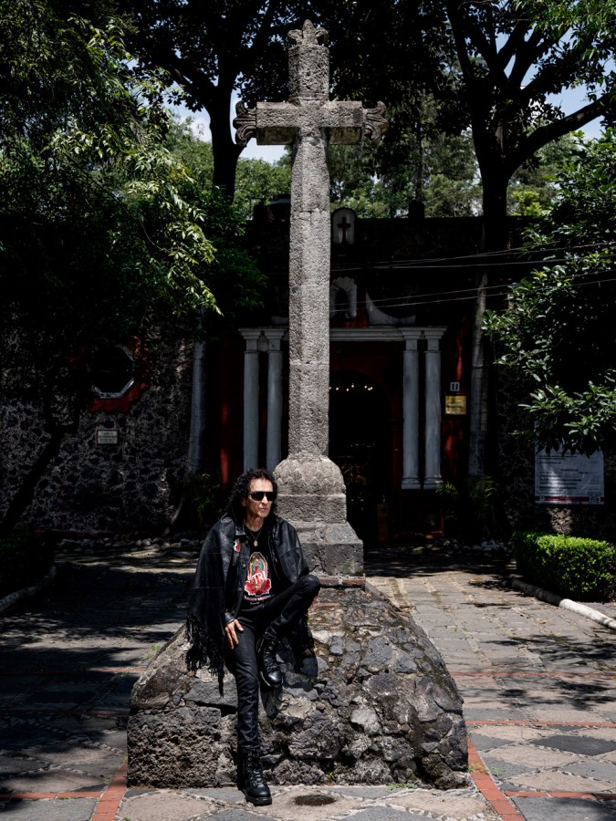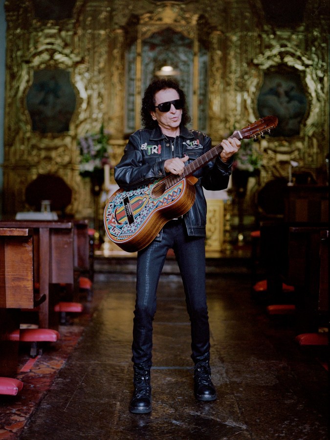 In an unassuming property on Periferico on the South Side of Mexico City lies a house that functions as headquarters to a man and his band who have come to define rock n’ roll music in this country. Here, the 69-year-old legend sits in leather pants, boots, a black t-shirt with an image of la Virgin Guadalupe, and a black denim jacket decorated with patches of his band. He’s surrounded by posters, gold record plaques, and other memorabilia from more than 50 years playing rock music. As we settle for our interview, Alex Lora picks up a guitar and starts playing a blues shuffle, the kind of rhythmic riff that has been the backbone of his career—with Three Souls In My Mind, later renamed El Tri–for more than half a century.