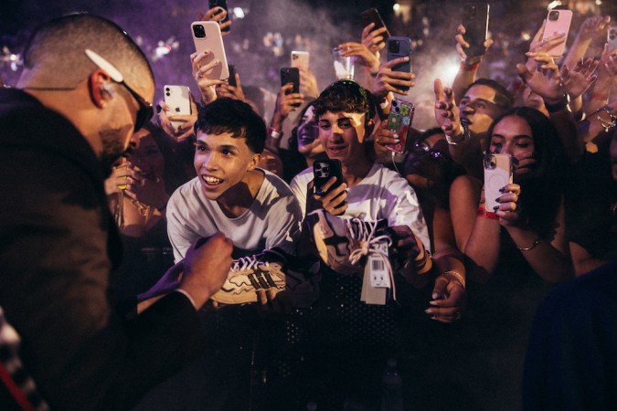 Moments before the show started, people walked onto the pyramid steps on the side of the venue: Benito’s VIP guests. Reggaetoneros, traperos, and producers were gathering to listen —Arcángel, Ñengo Flow, Tainy, La Paciencia, Young Miko, Bryant Myers, Los Rivera Destino, and even Colombian star Feid was there.