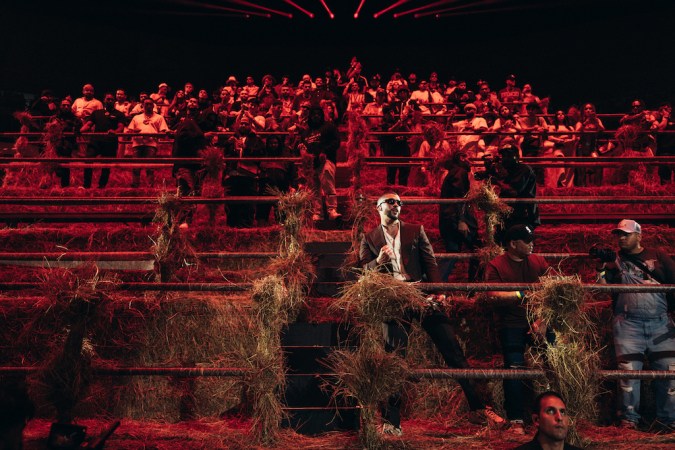 The venue featured a straightforward setup: A pyramid made of hay stood at the back, while a circular barricade took up the middle of the arena. Serenading the anticipation was a playlist of ‘60s boleros, salsa, bossa nova, and jazz playing in the background. Initially, it might have seemed like a casual choice, but as specific artists were getting played — La Lupe, Hector Lavoe, Bill Evans — it became clear: This was no accident. It was a subtle nod from Bad Bunny himself. He’s no longer the new kid on the block anymore. He’s the benchmark, a confirmed legend, akin to the musicians playing while we waited.