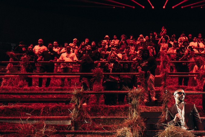 The venue featured a straightforward setup: A pyramid made of hay stood at the back, while a circular barricade took up the middle of the arena. Serenading the anticipation was a playlist of ‘60s boleros, salsa, bossa nova, and jazz playing in the background. Initially, it might have seemed like a casual choice, but as specific artists were getting played — La Lupe, Hector Lavoe, Bill Evans — it became clear: This was no accident. It was a subtle nod from Bad Bunny himself. He’s no longer the new kid on the block anymore. He’s the benchmark, a confirmed legend, akin to the musicians playing while we waited.