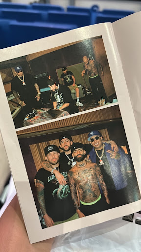 Moments before the show started, people walked onto the pyramid steps on the side of the venue: Benito’s VIP guests. Reggaetoneros, traperos, and producers were gathering to listen —Arcángel, Ñengo Flow, Tainy, La Paciencia, Young Miko, Bryant Myers, Los Rivera Destino, and even Colombian star Feid was there.