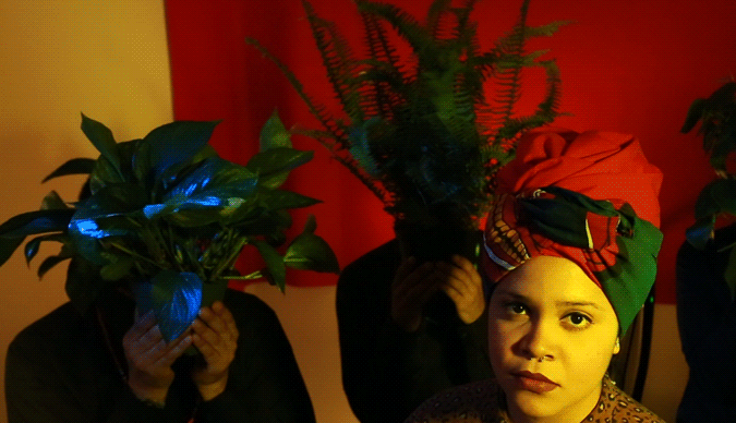 Inspired by Sun Ra and the concept of Afrofuturism, the members are envisioning a sound that broadly centers the global south: Africa, the Caribbean, and Latin America. “It means imagining a future with a cosmology derived from our ancestry, from our understanding of the world, instead of the Eurocentric version of how the future is supposed to be. It means seeing it and constructing it from a different perspective and a different way of seeing the world,” says guitarist Niño Lento, in an in-person interview with lead singer and guacharaquera Carolina Oliveros, and synth player and bassist Prince of Queens (In this band, they use stage names, though avid NYC-based music heads may recognize them from other projects). The band members don’t know what the tropical future looks like, but they are pretty sure it has more to do with reconnecting to the earth than blasting off into the stars. They are searching for the answers through their music.