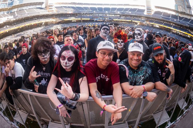 By sunset, Día de los Deftones looked like a mural come to life. City lights flickered behind papel picado, lowriders gleamed beside cempasúchil booths, and the band’s Mexican lager scented the air. Crowds spilled into Petco Park on Nov. 2 as corridos met distortion and rap crashed into reverb. For one night, San Diego, CA, felt like the capital of heavy music built by and for the culture that raised it. And as we close a year filled with political contention affecting our communities, the festival revealed something bigger: how cultural celebration can’t sit apart from escalating pressures facing the people it honors.