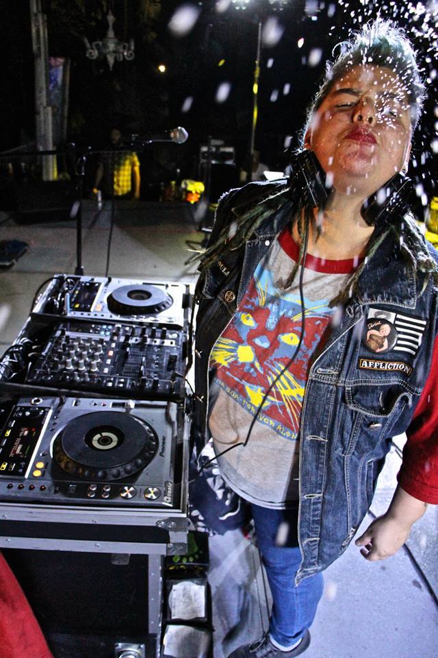 The promoter and musician arrived in Mexico City in 1992 from her hometown in Veracruz, and ever since has been building a queer, feminist community of underground artists and fans. She’s played drums and guitar and sung in bands like Kumbia Queers and Las Ultrasónicas, and was a founding member of cumbia group Afrodita. (She left the latter before the first album came out, choosing instead to perform bootleg versions of the songs she’d helped develop in a touring act she jokingly called Afro Dyke.)