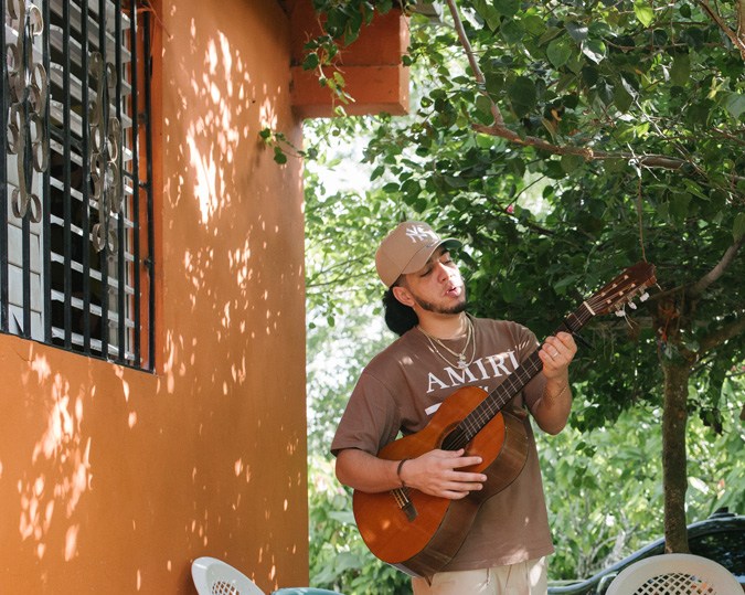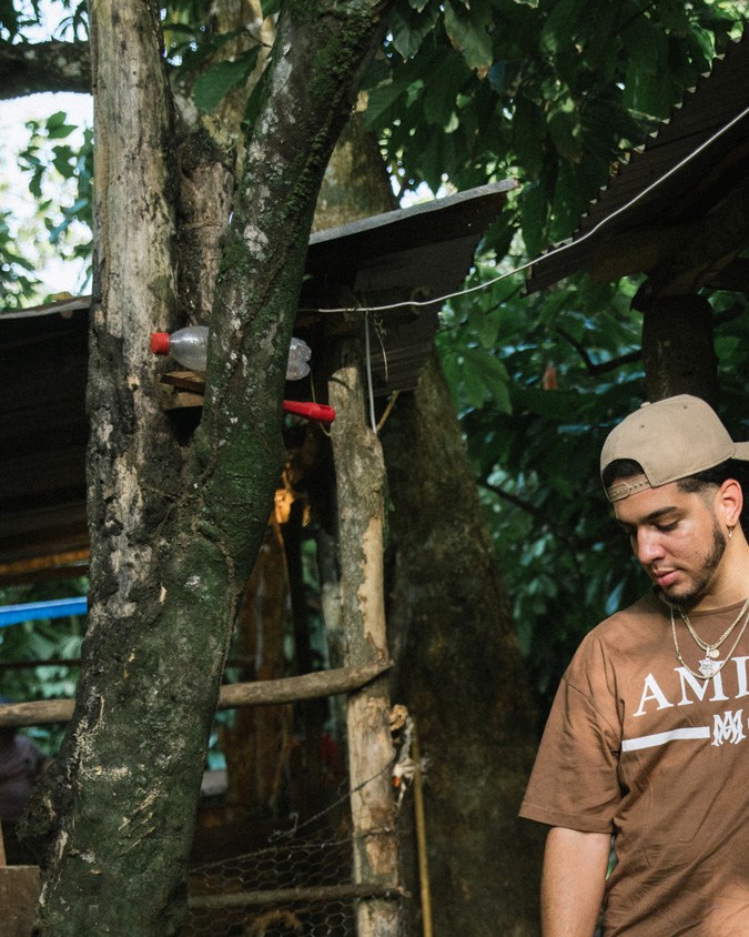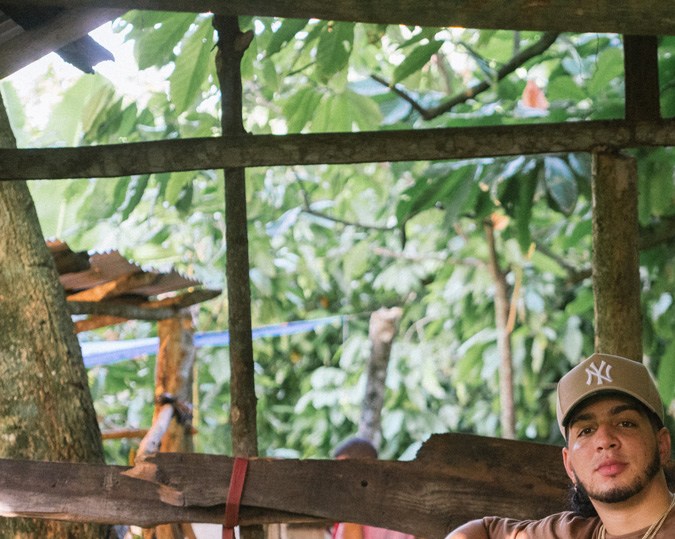 The next day, Remezcla caught up with El Rubio Acordeón at his cacao farm, just outside the city of San Francisco de Macorís, where he grew up surrounded by horses, goats, and verdant fronds. He still looks fresh, this time dressed in a palette of earth tones and a New York Yankees cap paired with terrain-appropriate rubber boots and a machete. His success as one of the country’s buzziest young merengue talents has come with its rewards, maintaining an almost daily performance schedule that enabled him to purchase neighboring plots of land. It’s a timely reminder that merengue was born and honed in Dominican campos, and that as global superstars like Bad Bunny, Karol G, and Rosalía spark conversation for dabbling in the genre, this music remains intrinsically linked to the land that birthed it.