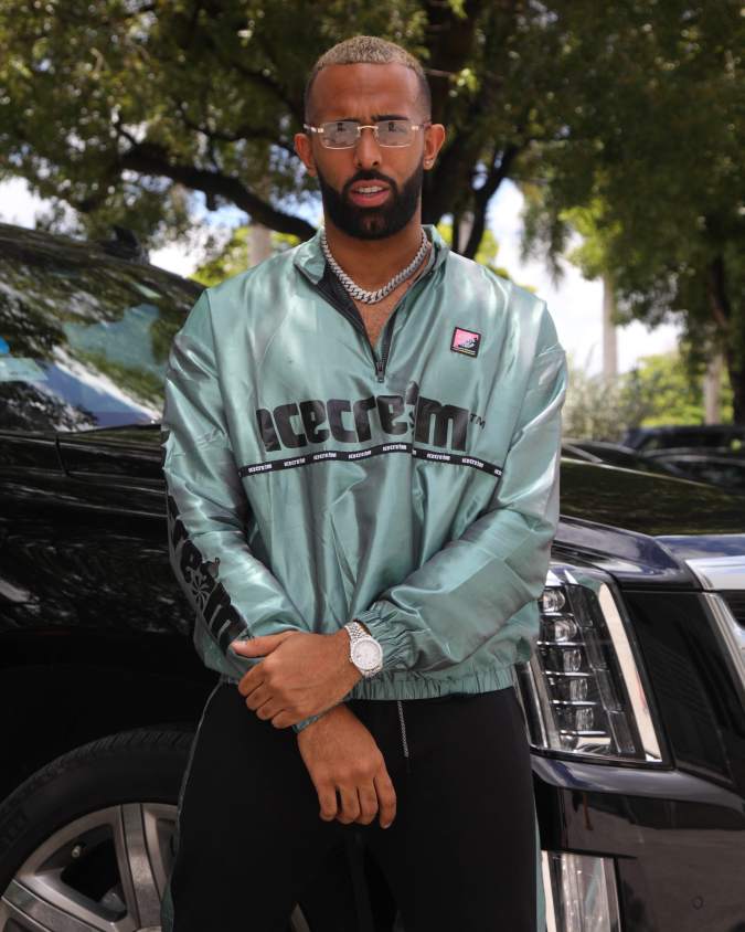 A recent signee of Rimas Entertainment – the powerhouse label/management group responsible for acts like Bad Bunny and Cazzu – Carrión arrived at Remezcla HQ like many of his contemporaries: surrounded by the obligatory entourage, covered in all the prerequisite drip, and with a dedicated photographer in tow chronicling his every move. But if a sudden come up would make many carry themselves with an air of superiority, Carrión takes it all in stride. (Even when he pulled up to one of our events in Miami the following week in a Lamborghini, he did so with a self-aware look of near-disbelief and gratitude). And this down-to-earth composure might be partly due to his difficult transition to Latin American life as a child.
