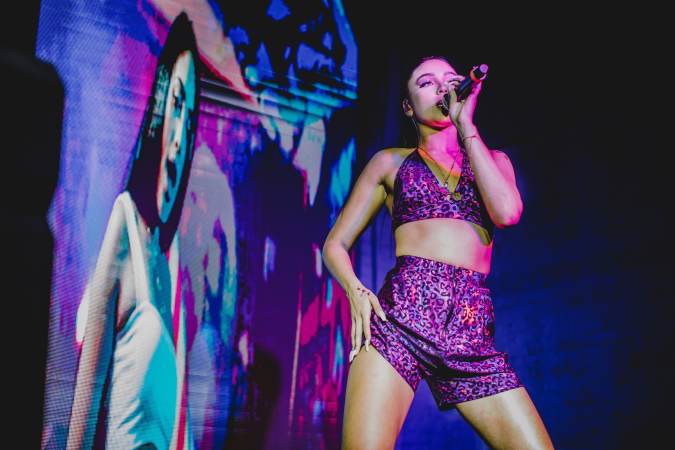 Red Bull turned one of the warehouses in Wynwood into a multi-room concert experience. There were two stages setup: one for the música urbana acts like Sky and Dimelo Flow, and another stage for electronic artists like Dave Nada, and his collaborators Tittsworths and Happy Colors. No matter where you were in the building, the bass could certainly be felt everywhere and there was no shortage of perreo among the crowd. Alejandro Ramirez, who is better known as Sky, inspired the most perreo with this DJ set that blended reggaeton past and present. He would weave in and out of his hits like J Balvin and Bad Bunny’s “Como Un Bebé,” into Wisin y Yandel’s classic “Pam Pam.”