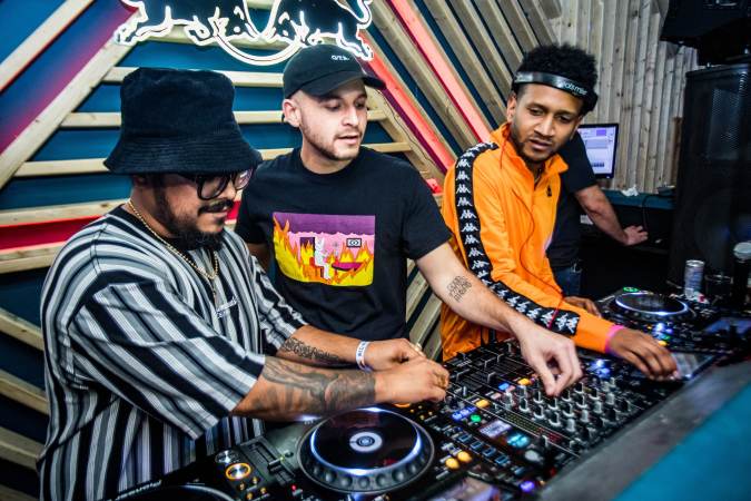 In the other room, Dave Nada, the pioneer behind moombahton music, was playing a wild set. It was 10 years ago that an edit of a song he made ended up launching a new genre. “I always thought Dutch house sounded like really fast dembow reggaeton, so I decided to pitch down the Afrojack remix of ‘Moombah’ by DJ Chuckie and Silvio Ecomo,” he says. “That shit went viral. It just kicked off from there and the next thing you know, everyone was making moombahton edits and it just kind of spiraled into this thing.”