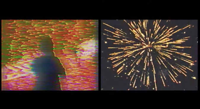 The result is a loosely tethered, visually distorted narrative that unfolds through a split-screen. The right side features portraits and perspectives from people around the world, many of which were taken on the director’s own phone and 16mm in Japan. On the left, Rubinos and Lange perform separately; those scenes were “shot on VHS and then distorted using this special little box that messes up the wiring in old TVs to create those weird analog distortions,” Stillz explains.