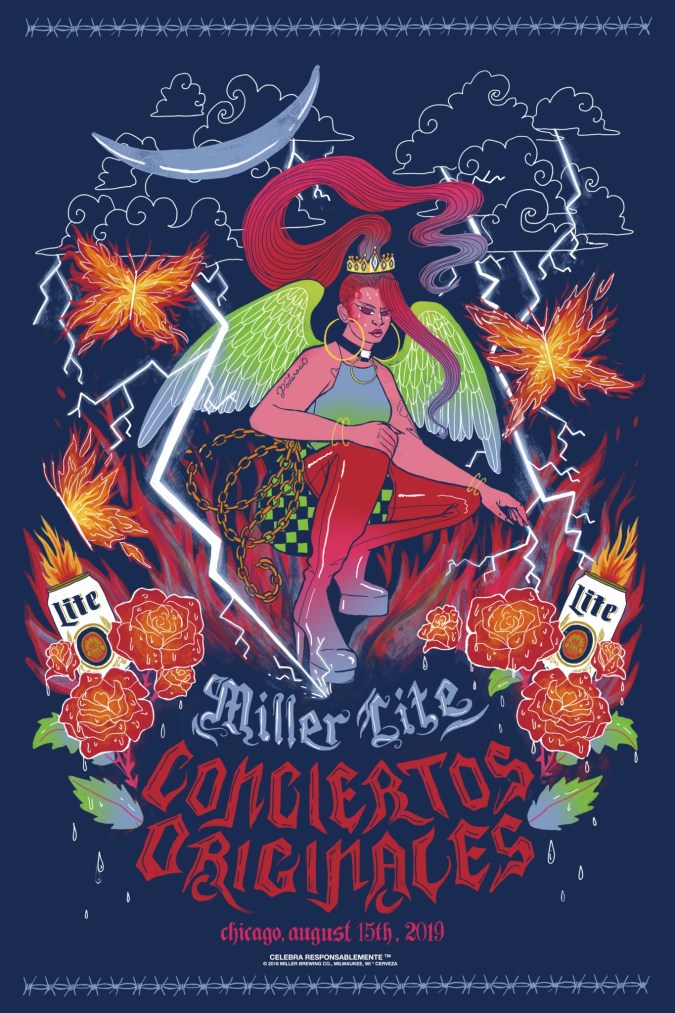 For Miller Lite’s Conciertos Originales – a series of free concerts the beer brand has hosted for the past seven years to celebrate the cultural impact of Latin music – reggaeton DJ and illustrator Gabriela Riveros was inspired by Ivy’s endless contributions to reggaeton when she designed a poster for La Potra. Before the performance, Riveros had a chance to meet La Reina face-to-face and share the artwork she’d created for her concert.