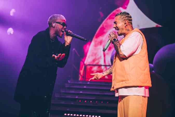 It’s always interesting to see how artists whose work is heavily tied to collabs will deliver tracks live: As expected, Balvin employed some guests, like Luigi 21 Plus for “Siempre Papi, Nunca Inpapi” and Jowell & Randy for “Bonita” (The latter got their own time performing – and promoting their own upcoming San Juan show – while Balvin rooted them on while sidled up to his DJ).
