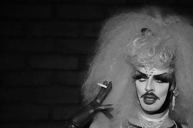 Before sCUM, Sanchez had met Forbidden at continuation school. “Me and Forbidden use to be enemies. We almost got down on Whittier Boulevard, in front of Little Caesars. We fought over being the only gay at punk shows, like, ‘I’m the gay one!’ Eventually, we ended up at the same continuation school. We became homegirls,” he says, laughing. Today, Lopez performs as Lady Forbidden, hosting sCUM’s daring performances which often find queens ripping latex dresses and dousing themselves in blood to the songs of Metallica. The club orchestrates perfect conditions for performers of all types: drag queens and performance artists to practice and test ideas. “We allow them to do everything and anything that is not against the law,” says Sanchez.