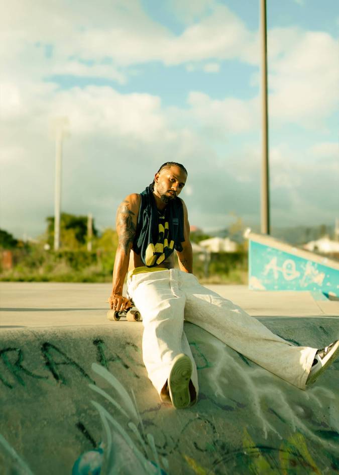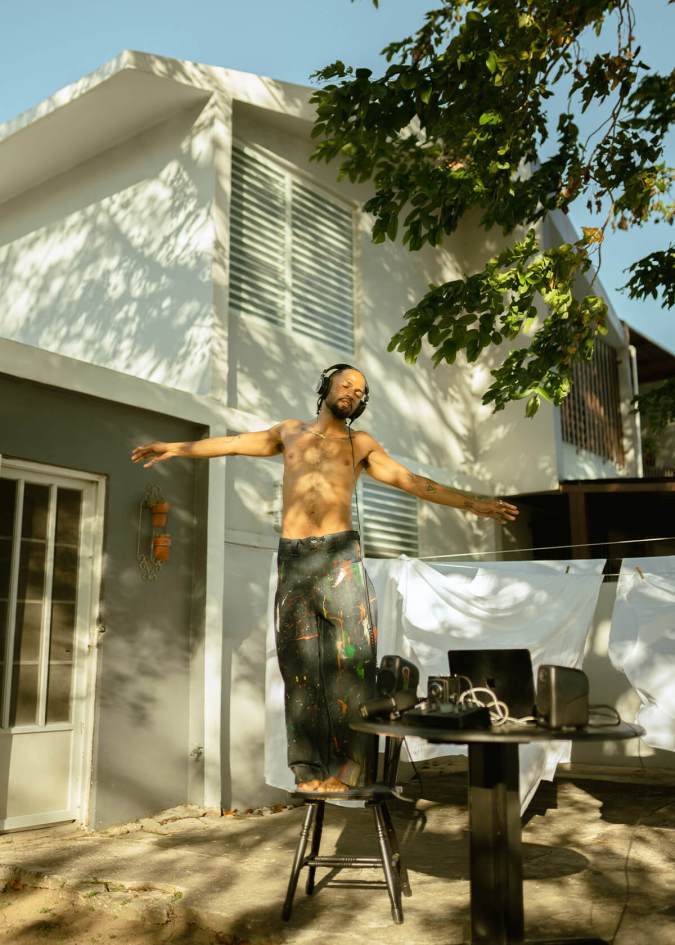 “You expect a lot of masculinity from a Black man; to be firm, to be streetwise, to be a rapper. And if not, then you have to do bomba or plena or be extra folkloric and be super proud to be Black. But there’s no space for Blackness to expand and be so much more than that,” he says. “I would love to break the idea of what Blackness is supposed to be for people who don’t understand representation and the diversity of Blackness in the Caribbean. And I know it’s going to happen — I’m setting the road for that”