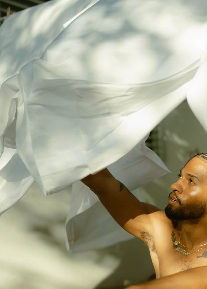In college, Matt moved to San Juan and found exciting opportunities opening up. Behind him were the days of rearranging his mother’s living room to do impromptu artsy photoshoots. The innate talent for styling he’d been honing and his photographer’s eye began to open up new doors. He found work with Álvaro Díaz doing clothing line campaigns and even had stints with Tainy and Jhayco. During his time with Díaz, he found himself in a studio with Venezuelan producing duo Lara Project. They heard promise in his singing and urged him to explore his sound. He eventually did, after much contemplation and studying. But all the while, he was also trying to unravel some other thoughts swimming around his mind.