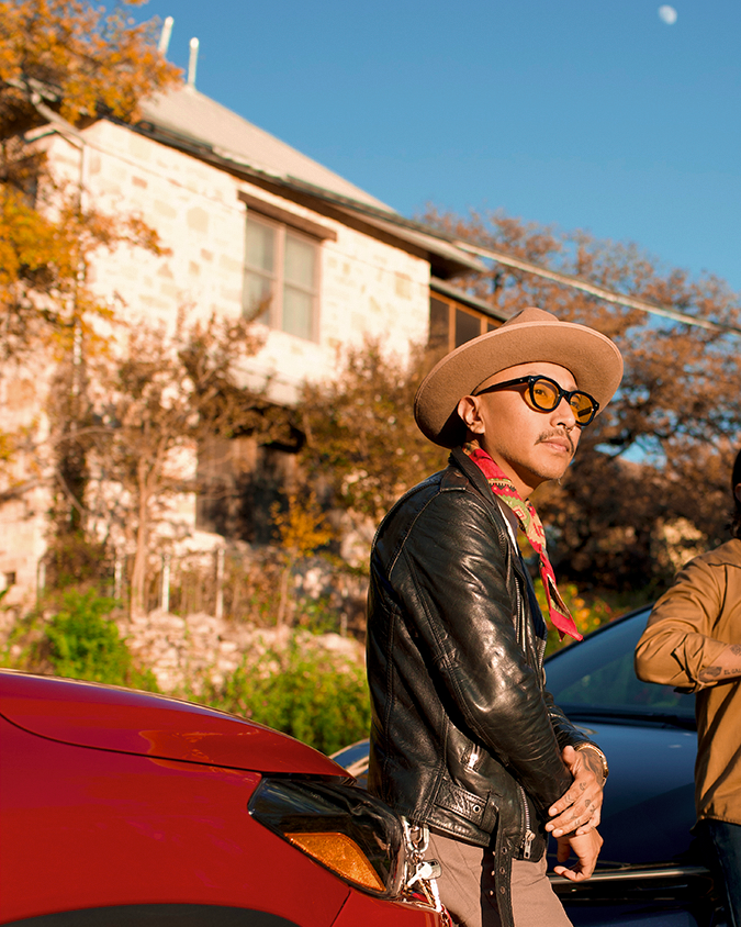 Along with leading the Austin, Texas, band on stage, Ricardo makes a living designing hats for Goorin Bros. Ricardo says working at the brand gives him the flexibility to change his schedule to attend band rehearsals and gigs.