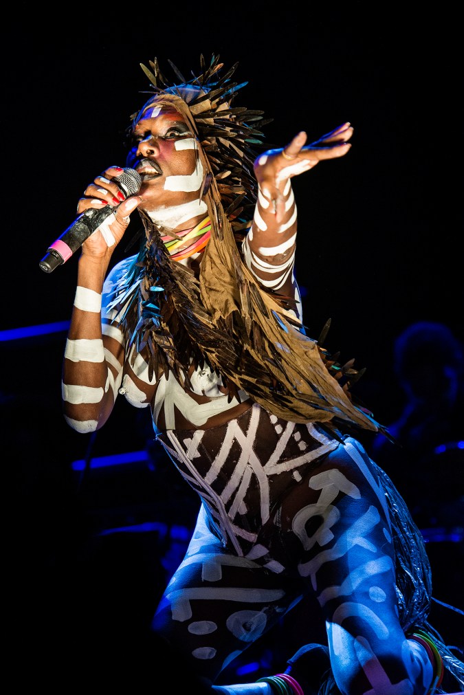 Liniker was not the only one spreading black girl magic on Primavera audiences. Solange delivered a powerful, minimalist headlining set filled with lush costumes and cinematic lighting, whereas Grace Jones chose the opposite direction for her show. The legendary singer, actress, model, and socialite cavorted on stage, completely naked except for a corset, in her famous Keith Haring body paint and a parade of wild headpieces.