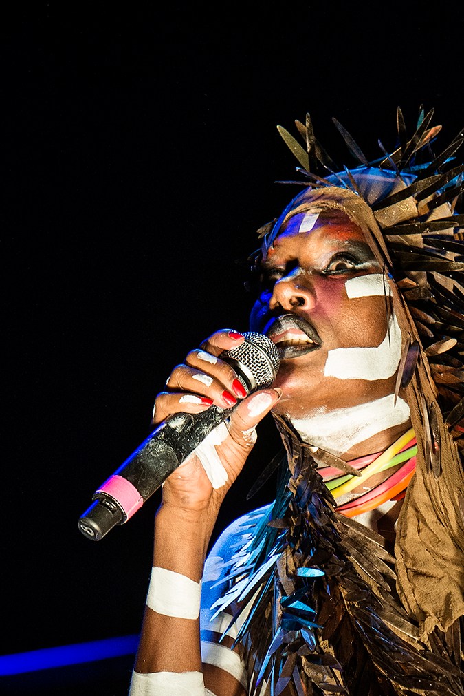 Liniker was not the only one spreading black girl magic on Primavera audiences. Solange delivered a powerful, minimalist headlining set filled with lush costumes and cinematic lighting, whereas Grace Jones chose the opposite direction for her show. The legendary singer, actress, model, and socialite cavorted on stage, completely naked except for a corset, in her famous Keith Haring body paint and a parade of wild headpieces.