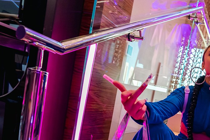 Along with the talent that walked through Remezcla Studios, the event also featured a recording studio set up for unexpected collabs and interactions — a space that had producer Caleb Calloway on hand to create some new sounds and set the tone for emerging and established Latine musicians to collaborate. And that wasn’t all, if attendees wanted to take their creativity from sound to fashion: PUMA partnered with Major Wavezz to offer customized shoes to top artists in their designer studio that featured the Vegas skyline as their background. It was no surprise to see the artists bring their A-game when it came to designing their customized shoes.