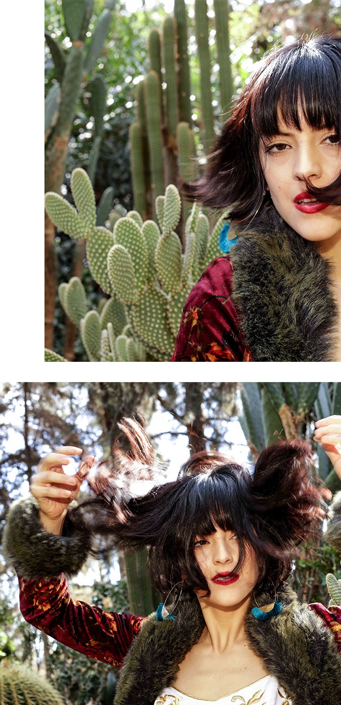 With little-to-no filming budget, the gifted (“he gave it to us for nothing,” she says) clothing was a boon to creating the opulence pictured: Fur outerwear, a leopard coat included, a red velvet beret that’s striking against María’s dark bob and all-black outfit. That their guitarist’s dad’s house is especially gorgeous helped, too.