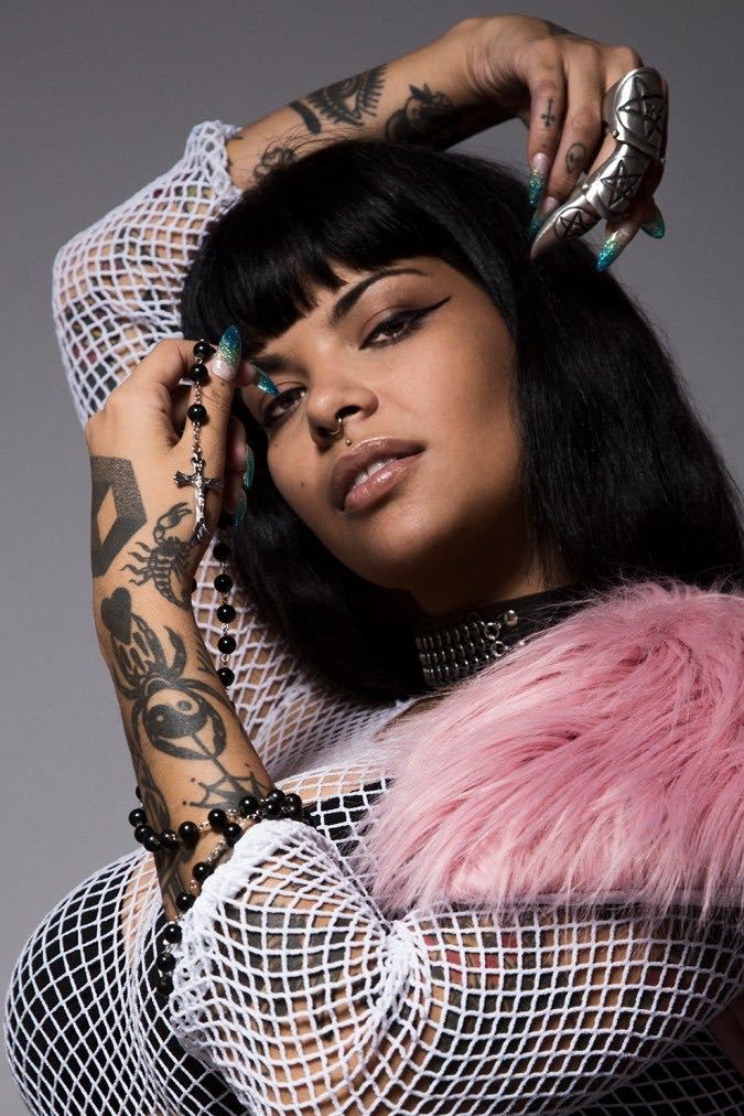 Now that she has a record deal and a new album made with legendary producers in a well-equipped studio, it’s easy to forget that Tomasa del Real gave birth to her reggaeton career in her apartment in Iquique, a small town where the plateaus of Southern Peru meet the Chilean coastline in a flurry of high-rise buildings and highways. It was there, in 2014, that she made her music video for “La Vampira.” Tomasa used a simple mirroring trick in the clip so that her purple lips and impressively long locks flit in and out of the shot, hypnotic as the undead being with whom she claims allegiance in the song’s lyrics. An unidentified friend shows up in the background at one point. Tomasa didn’t even edit out the part at the end where she turns the camera off; DIY and proud.