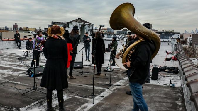 Parra and Hernandez originally planned to kick off their Patreon fundraising campaign with a benefit show at an independent venue in Brooklyn featuring some of the bands from the U Capture series before COVID hit. The show and much of their future production was put on hold, but Urbano adapted. They traveled around town, filming a handful of socially distant “COVID visits” and interviews on stoops and from windows, providing a much needed connection for artists and fans. “These artists are the most affected people in the pandemic because their day and night jobs were in the hospitality and service industry. Everyone worked as bartenders and they also have their gigs trying to perform their art,” Hernandez says. “We asked what they were doing, how were they affected, what have they learned? Many of them told us that they were really stressed out and a lot of them started like meditating. We thought it was important to document their stories and share them with the world.”