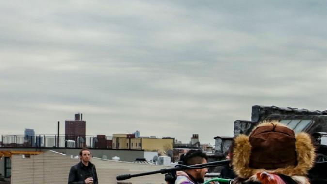 There’s garbage inching into the frame of this sidewalk music video, powered by an extra-long extension cord dropped from the second floor of an apartment. The J/M train is lurching past, making an unmistakable high pitched scream as it grinds to a halt on elevated tracks. Kids run around, dancing in between the musicians set up in front of Warude Café in Bed-Stuy, Brooklyn. Diana Hernandez and Lucho Parra want to capture all of it, and have made it their mission to document underground musicians at street level (and sometimes on roofs) in their natural habitat—a gritty, warm and super evocative city.