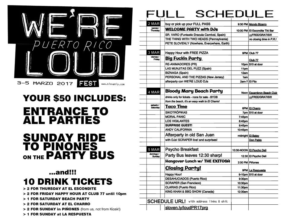 We’re Loud Fest hits San Juan on March 2-5 and Mexico City on March 8-10. For more information and to purchase tickets, click here. Check out the full program of events for the San Juan edition below.