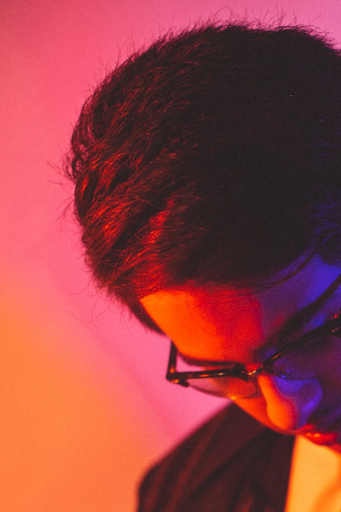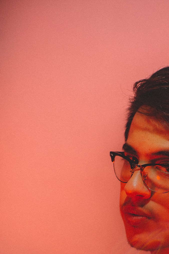 The 20-year-old producer’s nicotine-fueled oration ranges between funk, Chicago and New York, Paris’ Ed Banger Records and Justice, Prince, the Beach Boys, Pink Floyd, and Solange. As he traverses this panorama of synth and sound, his tortoiseshell glasses slip and stay perched down the bridge of his nose, leaving him peering across the table over the lenses. The gaze evokes something close to a Revista Tú heartthrob vibe, highlighted by his choice of wardrobe: a rose-colored T-shirt with the sleeves rolled up – very millennial pink James Dean in Rebel Without a Cause.