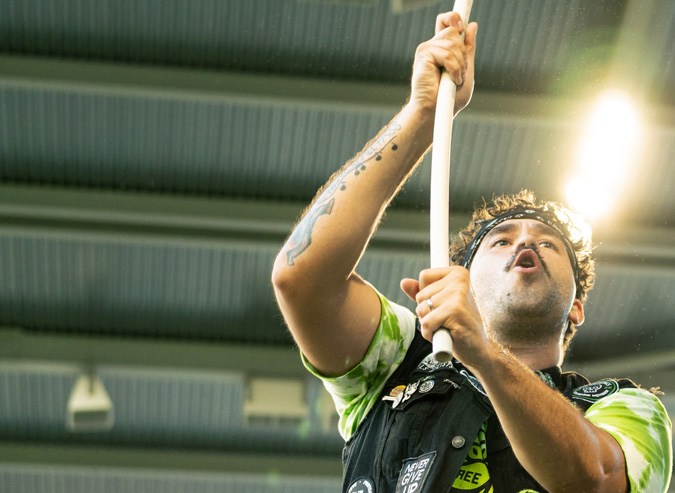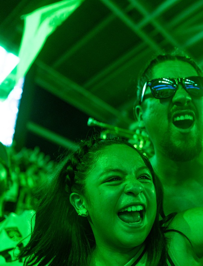 And though this is not the reason why La Murga de Austin was created, Clarke admits that the idea of shaping soccer culture in a way, and passing what they’ve created to a new generation, is indeed an inspiration. “The whole metaphor is …our logo for Austin FC is a tree.” Except it’s not, it’s actually two. “The whole idea is based on a real tree in Austin that got poisoned. And in order to save it, they had to plant a sapling from the tree next to it. So there’s like a young tree and an old tree that kind of have this symbiotic relationship and are dependent on each other. So we definitely think about things intergenerationally.”