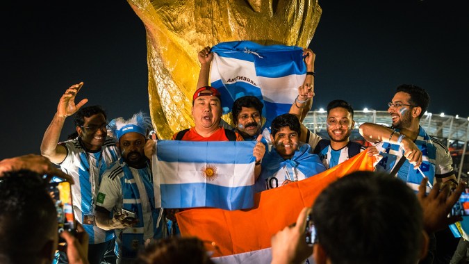 Despite their circumstances, they’re finding hope in Argentina and its star player at the World Cup. On the iconic Doha waterfront, Raheem Haque, an immigrant from Bangladesh wearing an Argentina jersey with Messi’s number, explained that in his native Dhaka, Argentina had long been a local favorite during the World Cup. And before Messi, they looked to another Argentine legend: Diego Maradona.