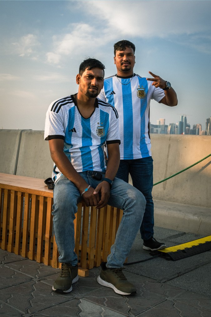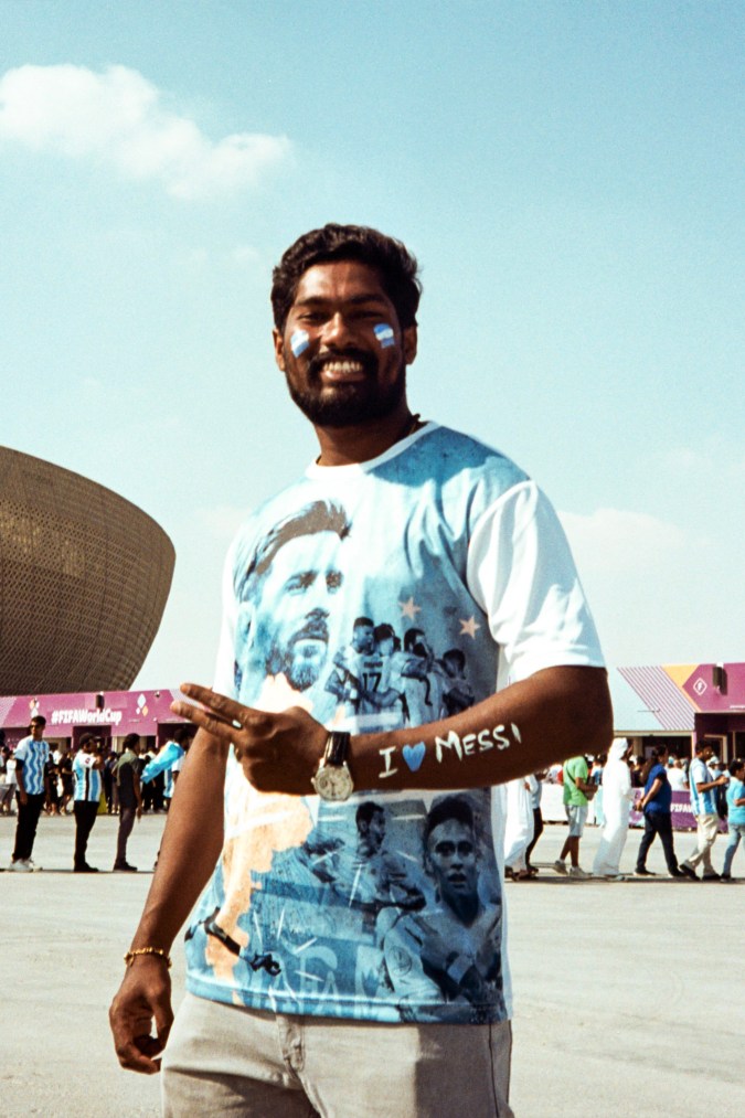 This relatable nature has made him an enduring symbol for the multicultural hub of Doha, where the majority of inhabitants are from other parts of the world. As seen in these photographs we captured (below), South Asian fans have chosen to proudly don shirts, hats, and flags emblazoned with Messi’s face and his number (10) in the intentionally-known celeste and white stripes.