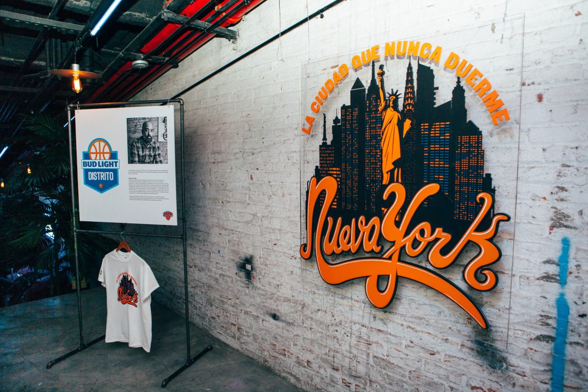 Last Thursday night, Remezcla and Bud Light teamed up to bring the “Bud Light Distrito” to life, celebrating the Latino NBA fans and players in conjunction with the beginning of the league’s Noches Ene-Be-A campaign. Bud Light also helped link the NBA up with Dominican-American artist Tony Peralta, who created exclusive merchandise and art inspired by the New York Knicks’ “Nueva York” logo.
