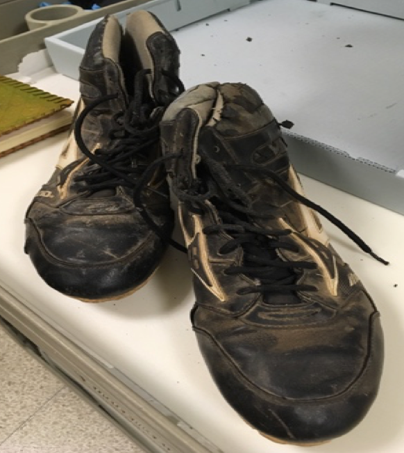 Another artifact in the collection is Chris Gonzalez’s donated pair of Mizuno baseball cleats that he wore from the 1970s to the early 2000s. Gonzalez played for various teams in Kansas, which included the Eagles and Aztecas.
