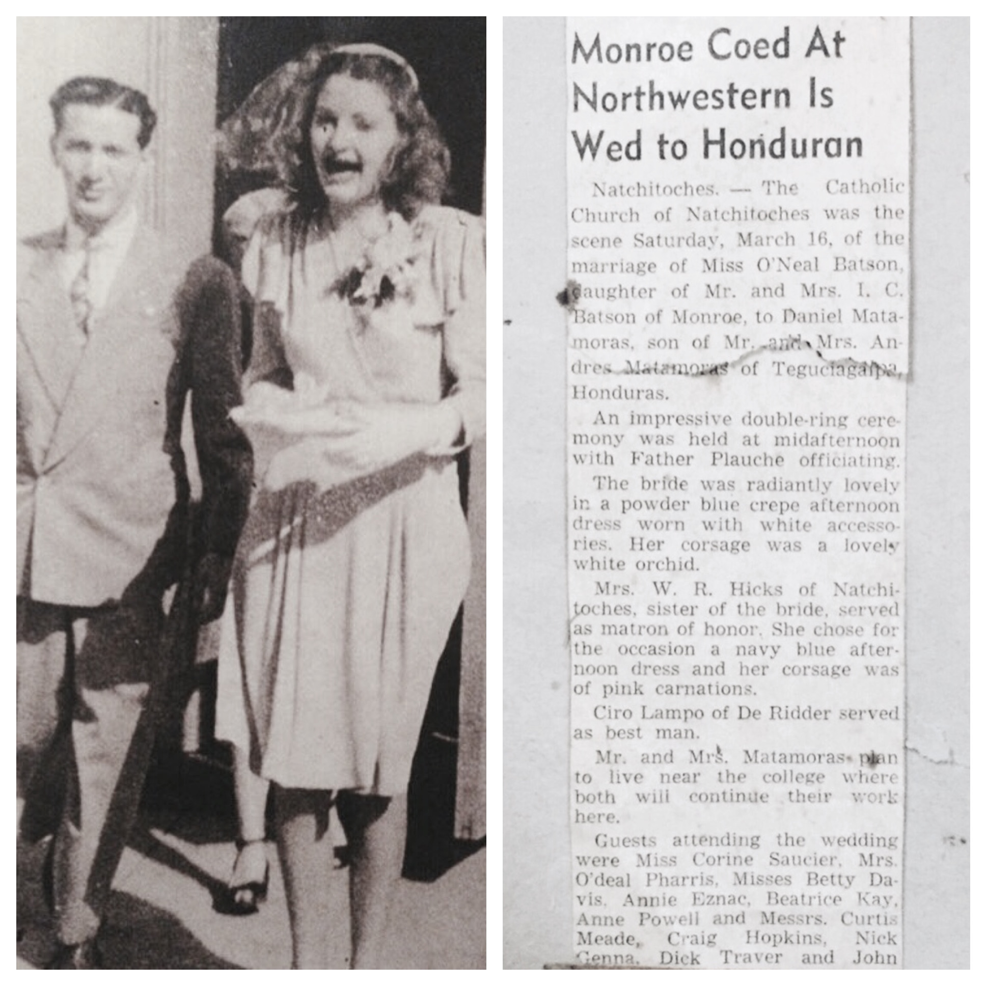 It was there in Louisiana, the state housing the largest Honduran population in the United States, where he would meet my grandmother, Marion; an Oklahoma-born, Louisiana-raised English student with a thick Southern accent that still poked through her Spanish years later. Given their different backgrounds, a Honduran and a Southerner falling in love in that era was enough to land them in the local paper, when they wed on Daniel’s birthday—March 16, 1946 in Natchitoches, Louisiana. In their own small way, they made a huge statement about the potential so see beyond one’s ethnicity, language and heritage.