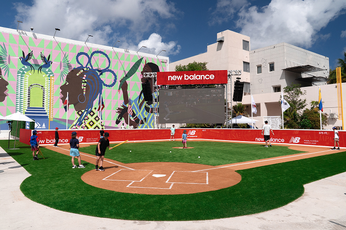 In the middle of Miami’s Design District, Jungle Plaza’s energy felt different. You could hear bats cracking before you even got close. New Balance took over the space for the weekend of March 14 and 15, setting up batting cages, a small field, and a clubhouse area with its latest World Baseball Classic-themed cleats laid out.