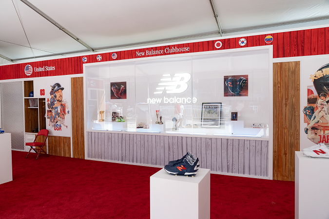 Along one wall, New Balance displayed its newly designed cleats in front of various country flags. Above hung a simple, yet powerful phrase: “Understood in every language.” The colors, flags, and player associations behind the cleats told a story: Baseball and culture are inseparable, almost synonymous.