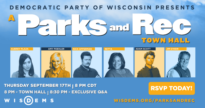 Parks and Rec fans can chip in any amount to participate in the online event. Donations will benefit the Democratic Party of Wisconsin.